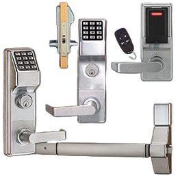 Electronic lock | Electric strike | Electric deadbolt | Electric rim lock | Electromagnetic lock | Shear lock | Magnetic lock | Card access lock | Rfid lock | Keypad lock | Keycode lock | Touchscreen lock | Biometric lock | Fingerprint lock | Hand geometry lock | Facial recognition lock | Bluetooth lock | Wifi connected lock | Access control lock | Networked lock | Cloud managed lock | Wireless lever lock | Hardwired lever lock | Audit trail lock | Pin code lock | Smart card lock | Token based lock | Fob lock | Smart deadbolt | Smart mortise lock.